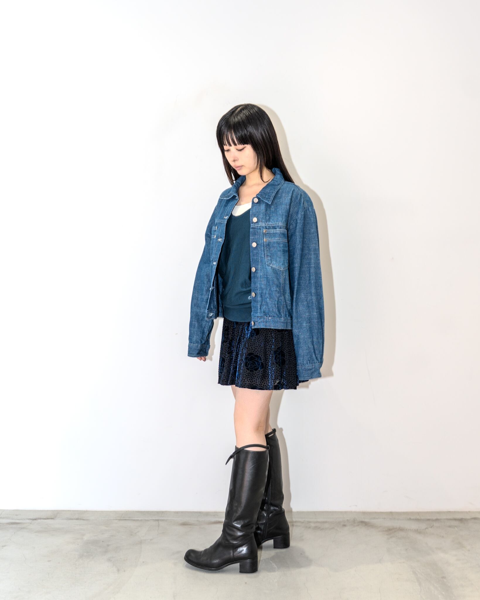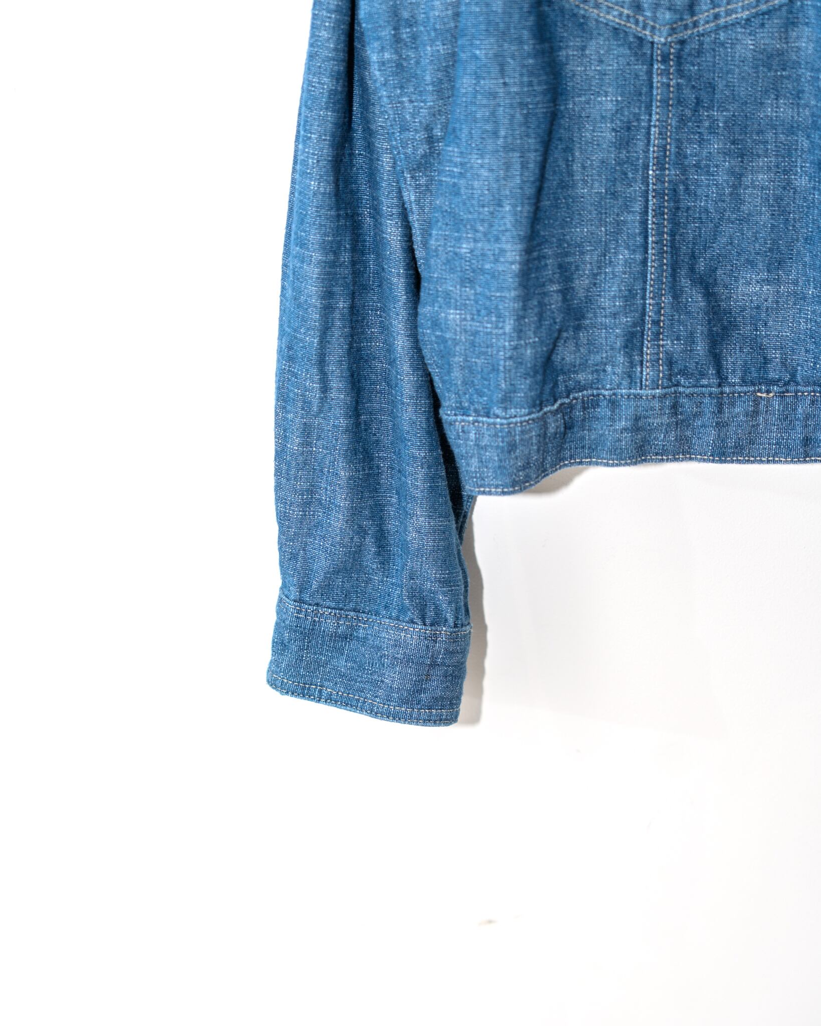 身幅もゆったりしてますが、ライトオンスな軽めのデニム生地なので、綺麗に落ち感があり、サラッと羽織って頂けます。