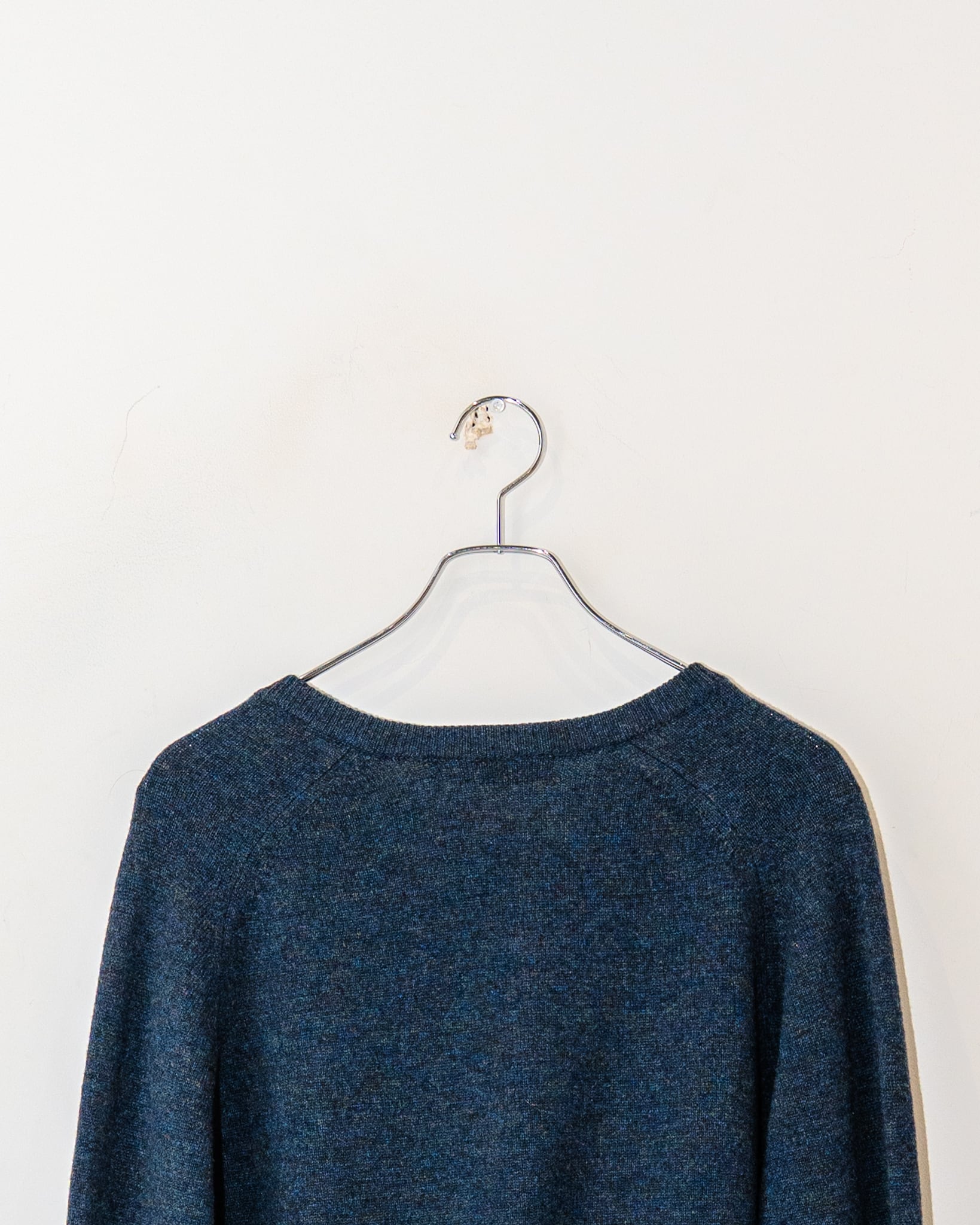 ブルーの中にミックス、糸が混ざった生地なので独特な奥行きのある雰囲気です。